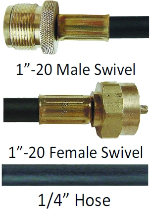 | 405197 | MER421-144 | 1"-20 Male Swivel | 1"-20 Female Swivel | 1/4" | 144" |