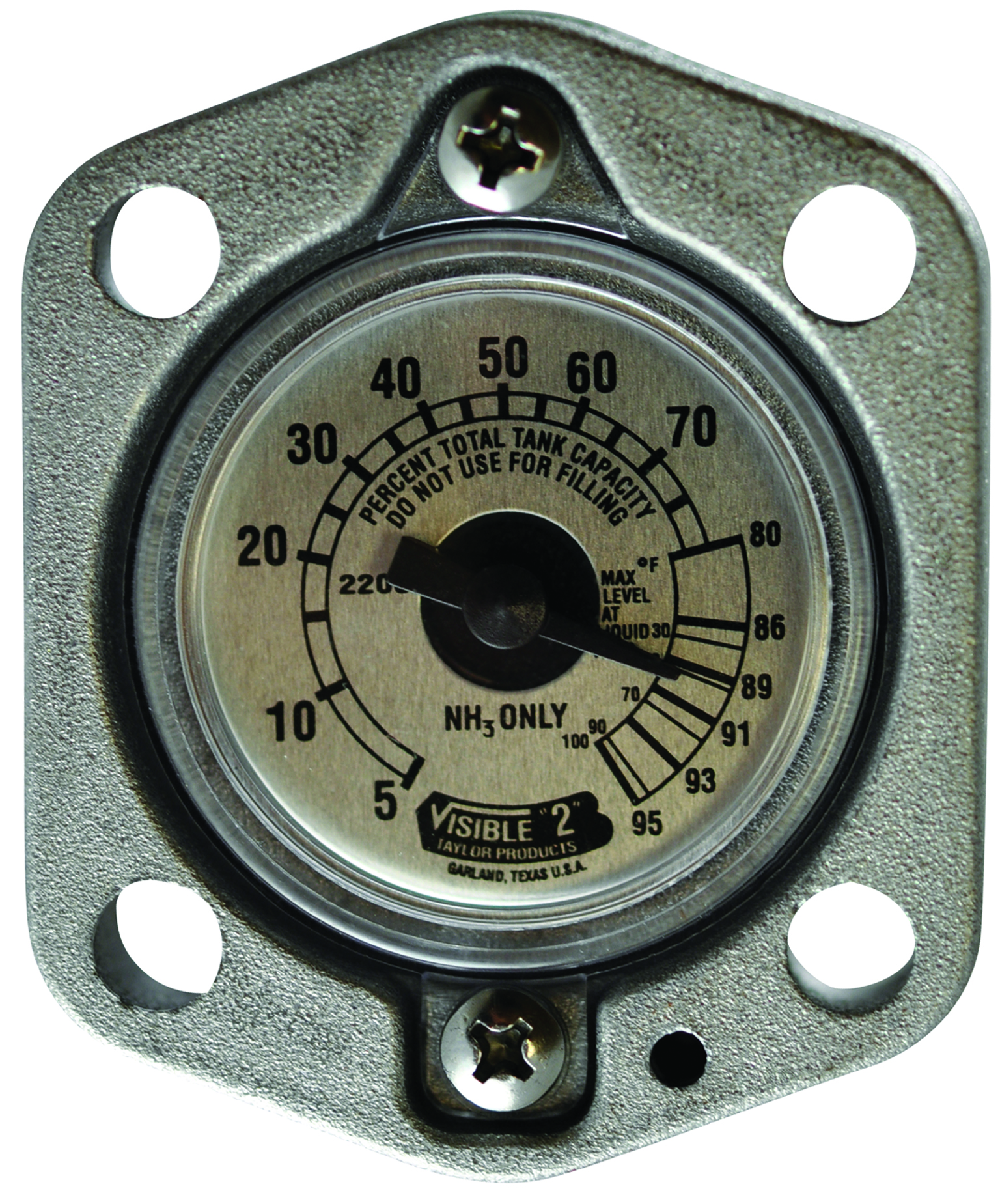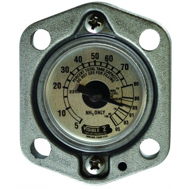 Float Gauges are designed to indicate the liquid level contents of NH3 Containers. These gauges mount in a Junior flanged coupling with a 2 1/32” diameter bolt circle.